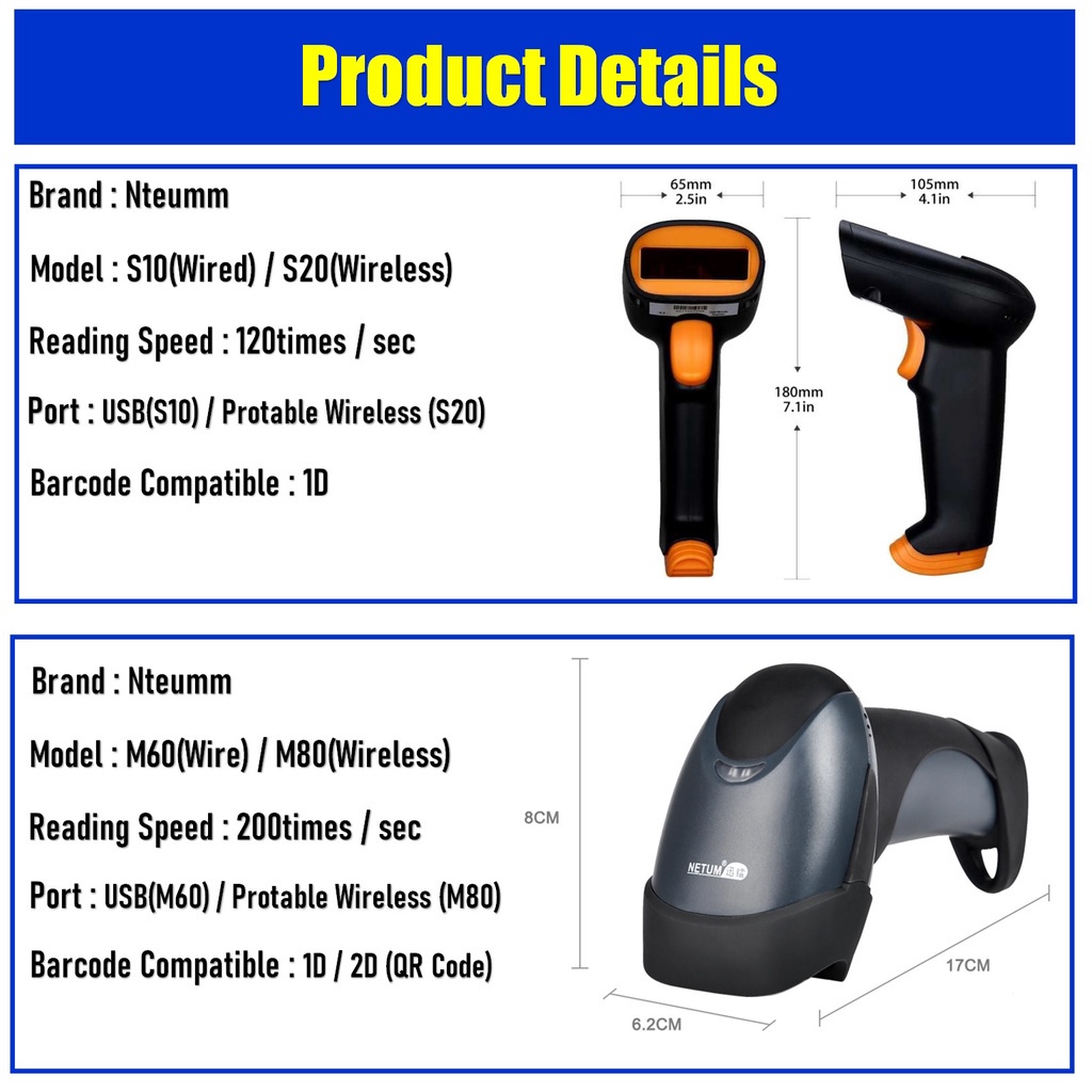 High Quality Nteumm S10 S20 M60 M80 1d 2d Qr Code Usb Wired 2 4g Wireless Laser Barcode Scanner Pengimbas Reader Shopee Malaysia